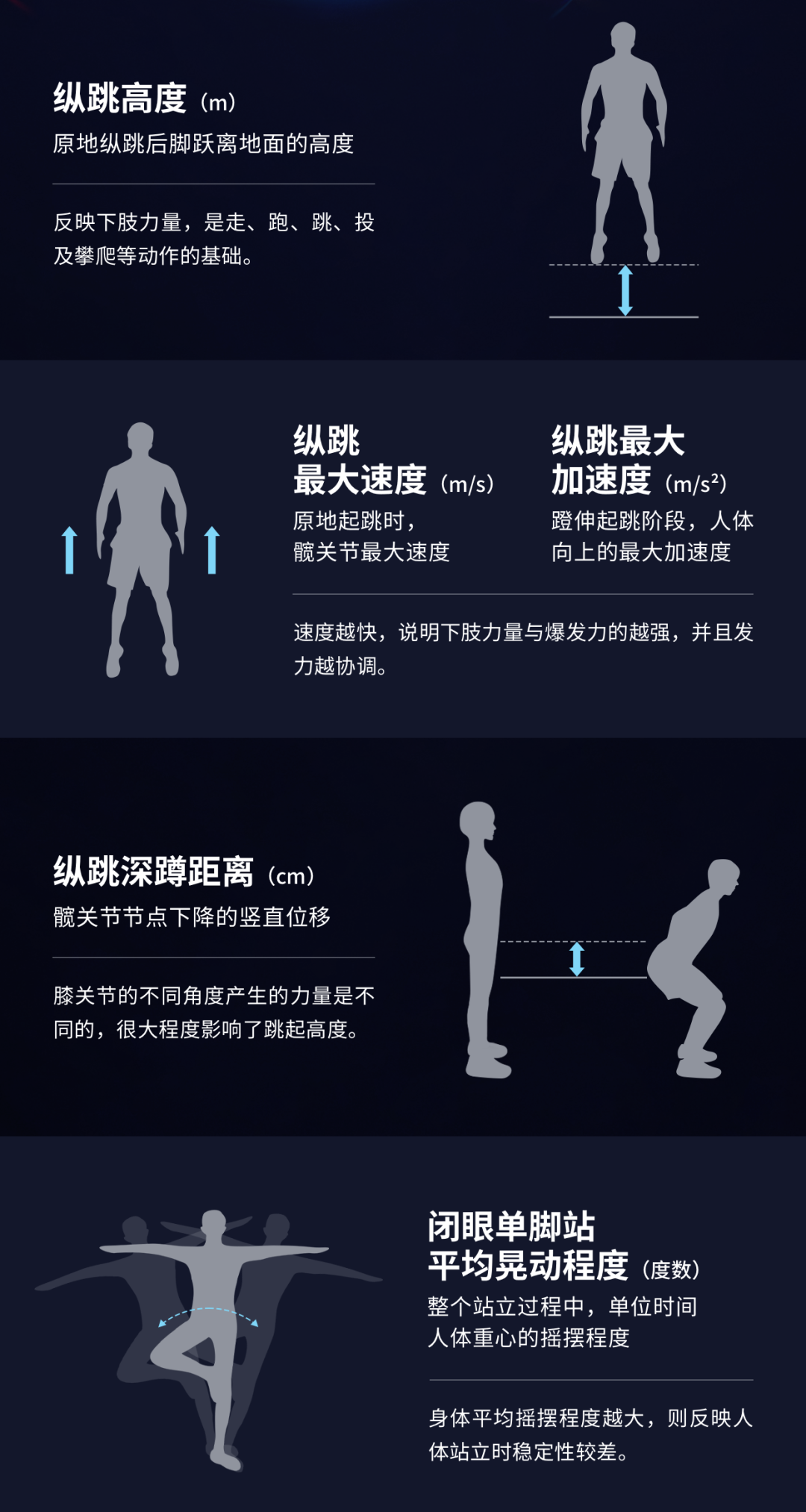 市面上大多数体测仪器和设备都是结果性测评,体质宝搭载全新一代动作捕捉系统,动捕数据质量显著提升,令起跳、转身、晃动、加速度等运动过程表现数字化,测评会更加全面。体质宝集成陀螺仪、加速度计以及磁力及,内置AHNS计算库,提供传感器姿态数据,并采用全新传感器标定方式、人体动作算法、传感器算法以及后处理算法,动捕数据更为精准。除此之外,为了让测试流程更严谨、更有仪式感,体质宝从以下3个维度予以规范。- 标准化测前讲解:让家长&孩子更好理解测试原理和目的,轻松搞定测评。