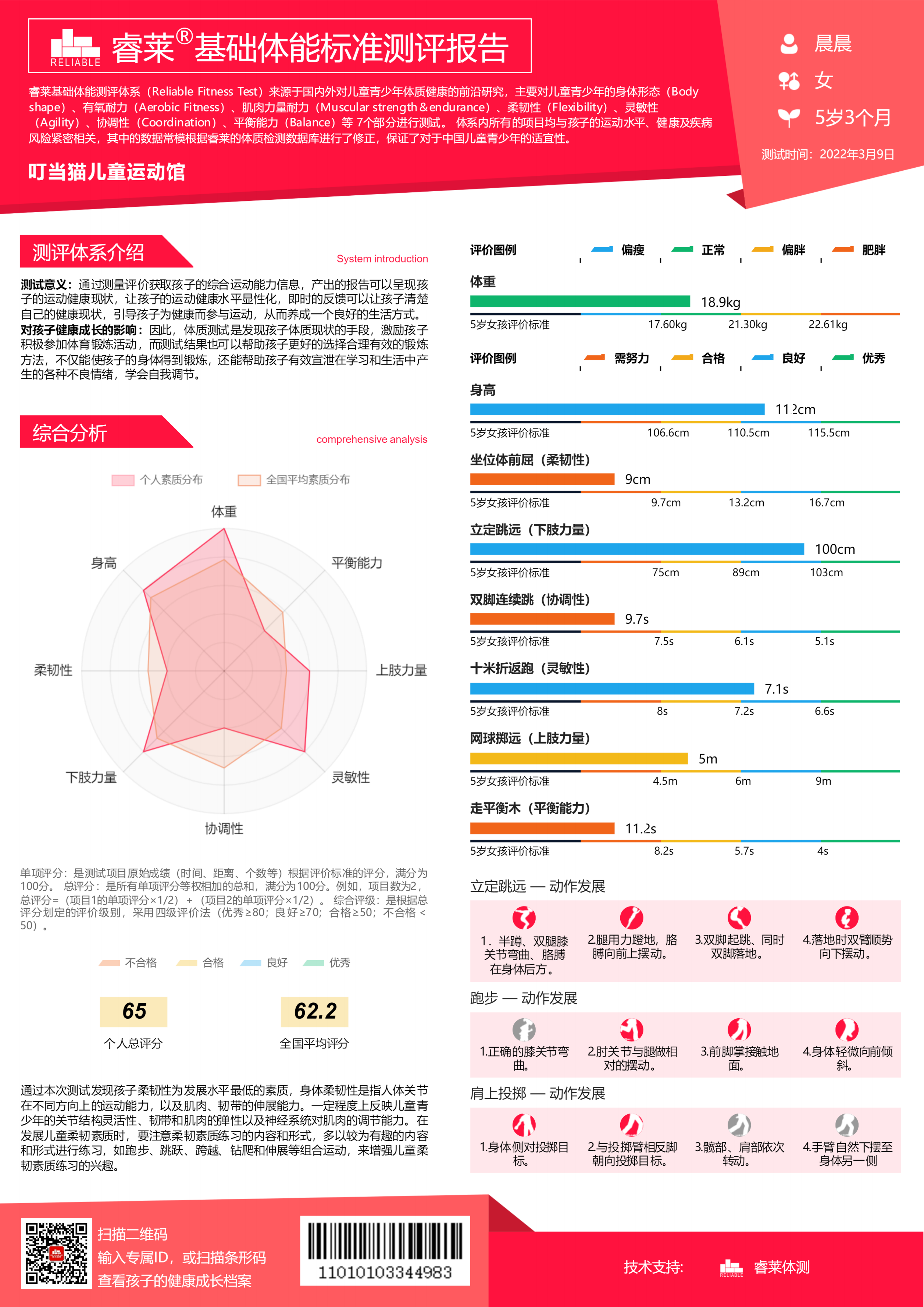 入学体能测试报告:诊断孩子的身体运动能;